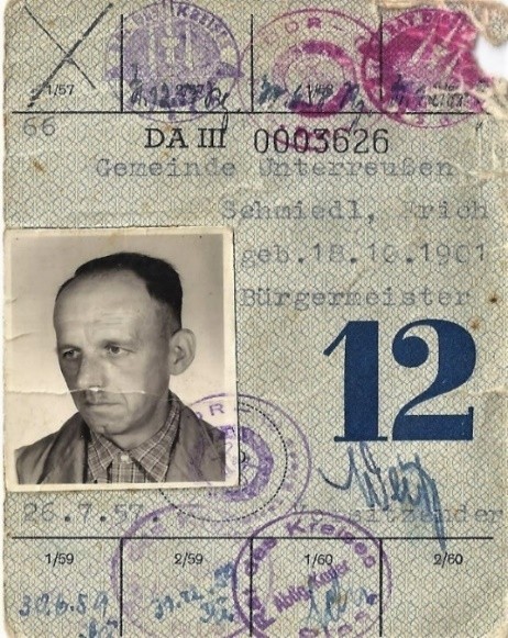 1960 haben sich einige Einzelbauern zu einer LPG Typ I (nur gemeinsame Feldwirtschaft) „Silberweide“ zusammengetan. Auch eine zweite LPG Typ I im Dorf entstand. Die anderen Bauern aus Reußen gingen mit Gründung der LPG Typ III nach Forberge. Zwei Jahre später traten noch einmal Bauern dort ein. Der Rest von vier Bauern aus Reußen schlossen sich noch einmal zu einer LPG Typ I „Vorwärts“ zusammen und wirtschafteten von 1. Januar 1962 bis 31.Dezember 1966 zusammen. Es war unmöglich geworden, technisch und finanziell mit den großen Genossenschaften mitzuhalten und so traten sie, als letzte der Unterreußner Bauern, 1967 in die LPG Typ III ein. Feld und Vieh mussten als Anteile eingebracht werden. Die meisten arbeiteten dann bis zur Rente in diesen Betrieben. Mit dem Beitritt in die LPG ging das über Jahrhunderte eigenverantwortlich über Eigentum und ideelle Werte geführte Leben abrupt zu Ende. Mit der Hoffnung der Rückkehr zur bäuerlichen Einzelwirtschaft hatten die meisten Bauern aus Altersgründen abgeschlossen. Auch das Dorfbild begann sich vorerst, noch äußerlich unbemerkt, zu verändern. Auf dem Hof Lehmann wurde ein großer Kuhstall ausgebaut. Die Milchrampe, der zentrale Treffpunkt der Einzelbauern zum Austausch von Neuigkeiten, wurde überflüssig, weil die Milch im Tank abgeholt wurde. Dafür entstand eine große Seuchenwanne mit Desinfektionsmittel gegen die Maul- und Klauenseuche. Bei Bauer Trapp wurde ein Zuchtstall für Schweine eingerichtet. Je ein Läuferaufzuchtstall entstand bei Schmidts und Theinerts. Ein Konsum auf dem Hof bei Edeltraud Trapp (heute Däberitz) sorgte für die Waren des täglichen Bedarfs. Auch eine Annahmestelle der Volkseigenen Erfassungs- und Aufkaufbetriebe (VEAB) für Eier, Obst und Gemüse wurde hier eingerichtet und später durch die Fam. Friedemann weitergeführt. Das Kuriosum der Einrichtung war, dass für die Abgabe der Produkte oft mehr gezahlt wurde als man im Laden dafür bezahlen musste. Für die Lesehungrigen gab es sogar in einem Zimmer neben dem Saal der Schenke eine kleine Bibliothek, in der man sich bei Frau Trapp Bücher ausleihen konnte. Jeder Bauer hatte natürlich noch seinen individuellen Viehbestand, meist Schweine, Schafe, Enten, Gänse und Hühner. Ein paar wenige versuchten sich zusätzlich an exotischem Getier, wie Eselzucht bei Theinerts und Henkers. Reußener Bürgermeister waren von 1950-56 Erich Seifert und von 1957 bis zur Eingemeindung 1961 nach Oppitzsch, Erich Schmiedel (Bild).