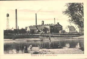 Das Gebäude entstand  1898 und wurde bis 1911 als Presslufthammerfabrik und größte Fabrik in Strehla betrieben. Anschließend wurde es bis 1929 als Zweigbetrieb der Chemischen Werke Heyden Radebeul weitergenutzt. Die Fa. Heyden war der Betrieb, der als erster Salicylsäure in der Arzneimittelherstellung einsetzet. Die Firma war später als Arzneimittelwerk Dresden bekannt und existiert heute wieder unter dem Namen Heyden.