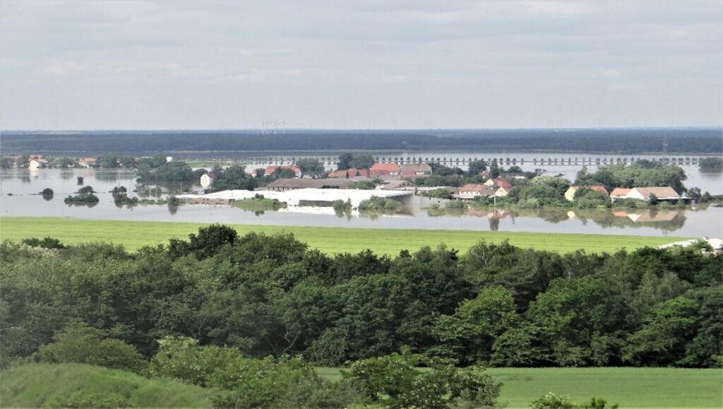 2013 Das dritte Hochwasser der Elbe in Folge erreicht mit 9,26 m über Normal fast den Stand von 2002. Man war aber schon besser darauf vorbereitet.